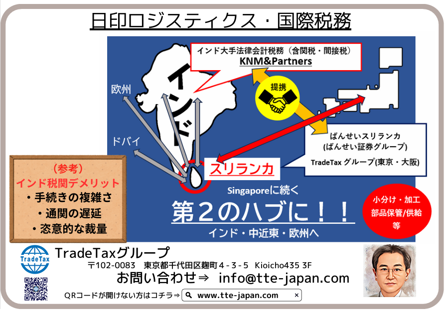 TradeTaxグループは、インド・スリランカを中心に、国際物流・国際税務の課題解決をサポートします。